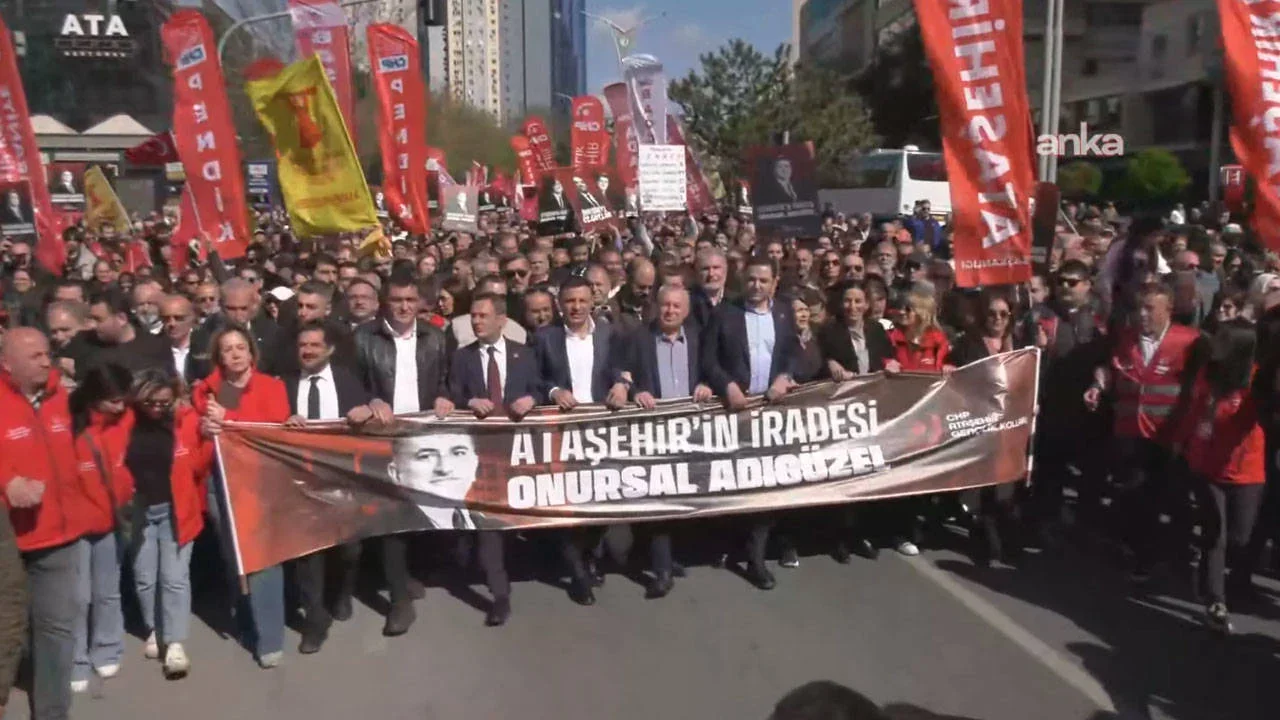 Ataşehir'de, Ataşehir Belediye Başkanı Onursal Adıgüzel'in gözaltına alındığı operasyona tepki amacıyla yürüyüş düzenlendi.