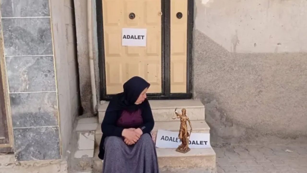 Anne Şenyaşar evinin önünde, 'Adalet' yazılı pankartlarla nöbetini başlattı.