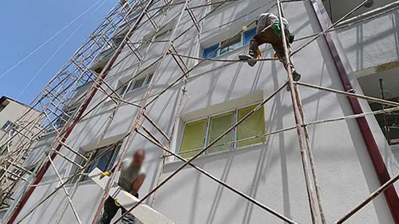 Maraş'ta, 6 Şubat depremlerinde hasar gören bir binanın onarımı sırasında 8'inci kattaki iskeleden düşen işçi hayatını kaybetti.
