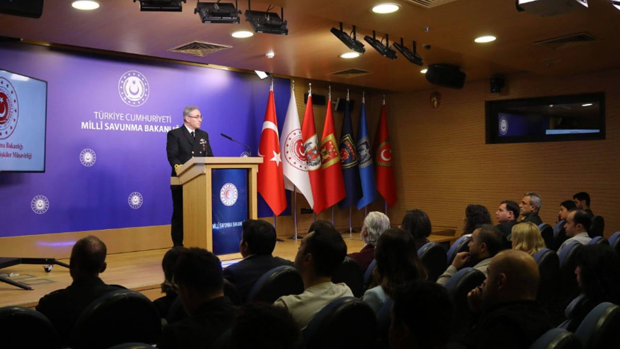 Milli Savunma Bakanlığı Basın ve Halkla İlişkiler Müşaviri ve Bakanlık Sözcüsü Tuğamiral Zeki Aktürk, Bakanlık Şehit Gazeteci Hasan Tahsin Basın Bilgilendirme Salonu'nda haftalık basın toplantısı düzenledi.